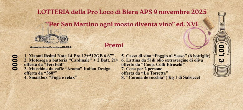 C/O la sede della Pro Loco in Via Roma, 17 BLERA (VT)